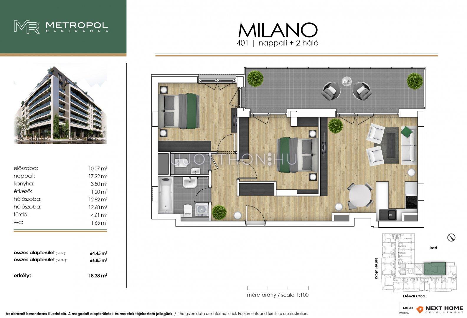 3 szobás 67 m2-es Lakás Metropol Residence - Budapest XIII. kerület, Angyalföld, Dévai utca Lőportár 17