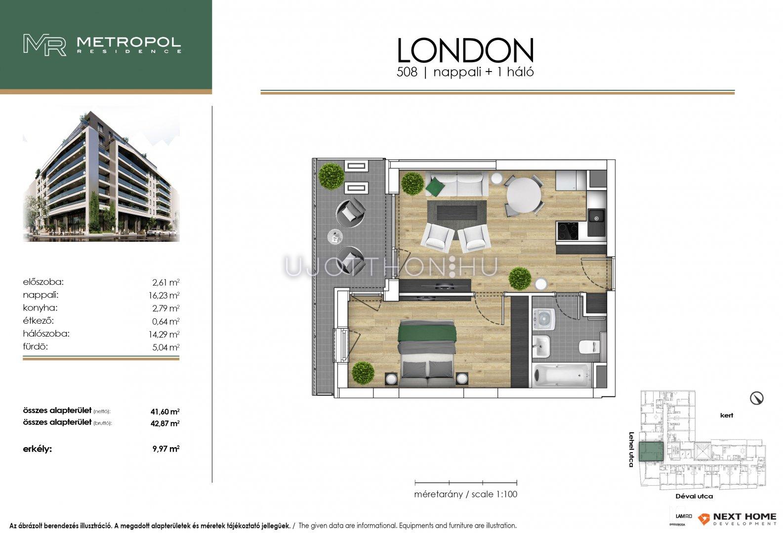 2 szobás 43 m2-es Lakás Metropol Residence - Budapest XIII. kerület, Angyalföld, Dévai utca Lőportár 17