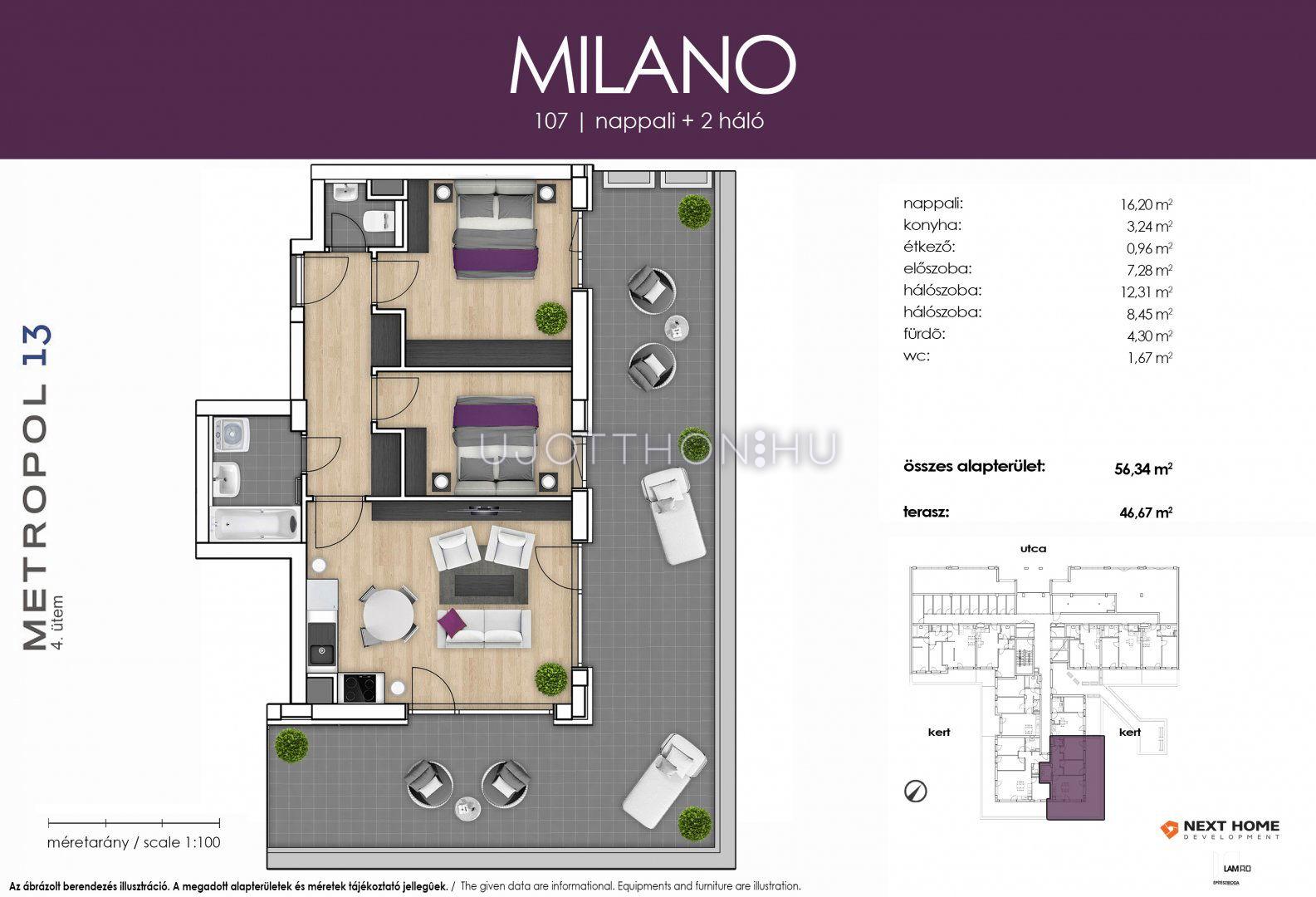 3 szobás 56 m2-es Lakás Metropol13 4. ütem - Budapest XIII. kerület, Lehel utca 27.