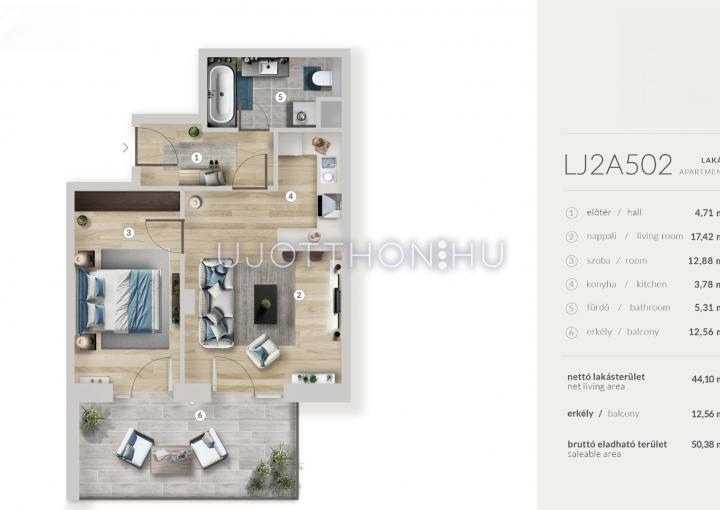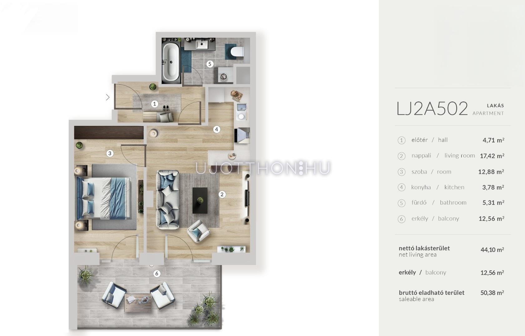 2 szobás 47 m2-es Lakás My Garden 2 - Budapest XIII. kerület