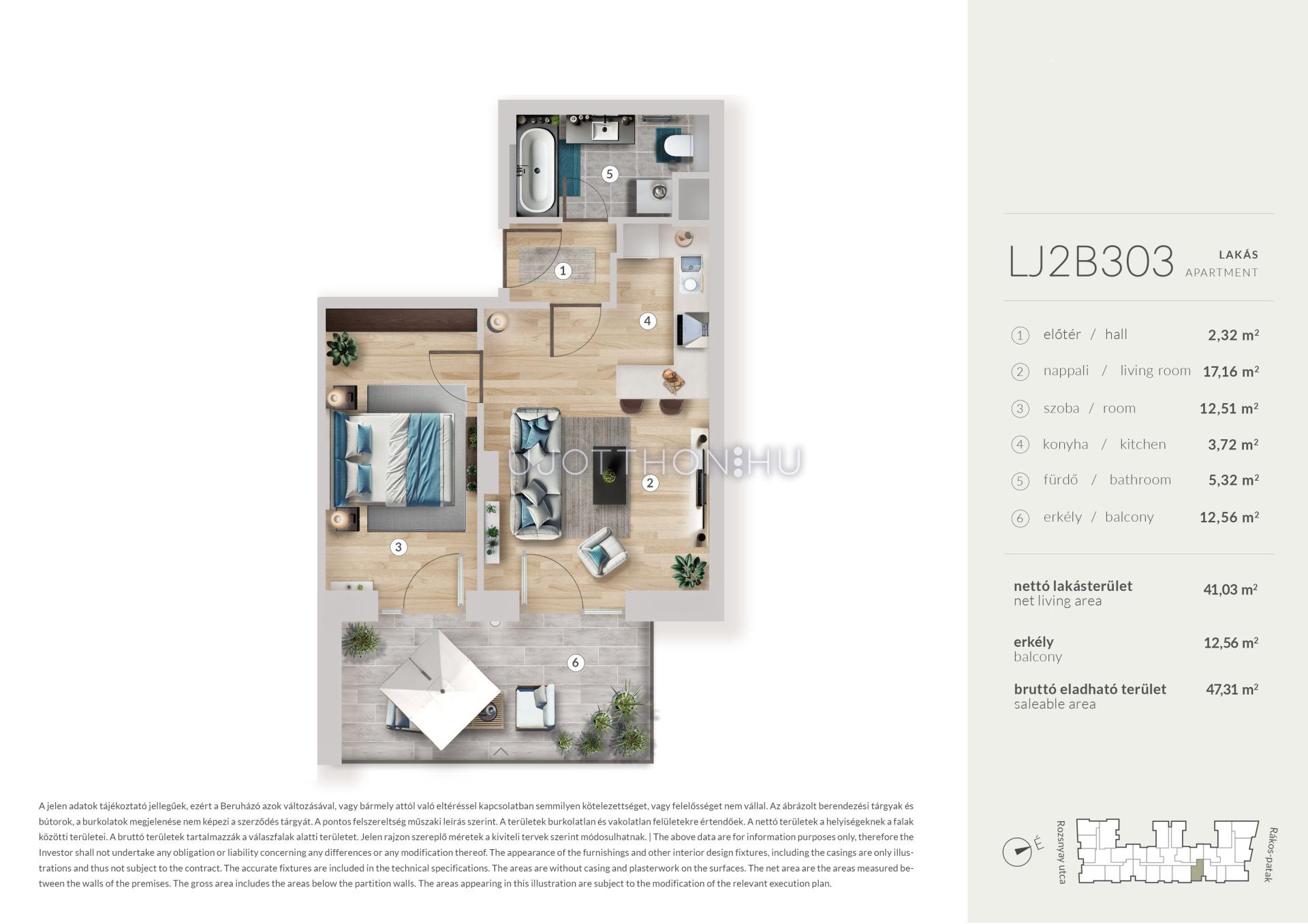 A 6. emeleti penthouse lakásokból pazar kilátás nyílik a budai hegyekre, a kényelmet pedig biztosítja, hogy a nagy teraszon jacuzzi-nak kialakítható hely is található.