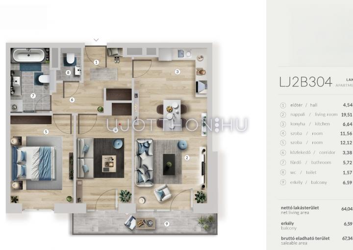 3 szobás 64 m2-es Lakás My Garden 2 - Budapest XIII. kerület
