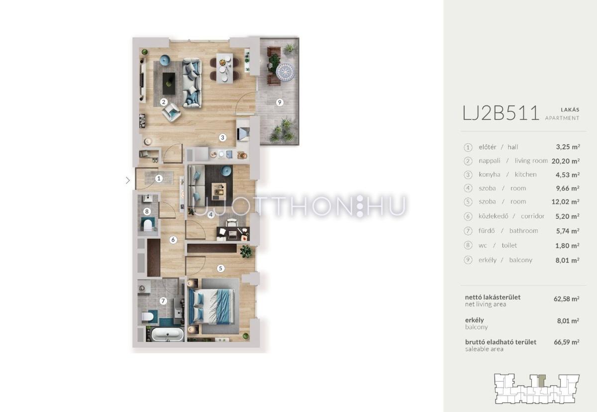 3 szobás 63 m2-es Lakás My Garden 2 - Budapest XIII. kerület
