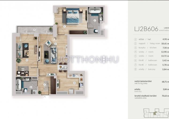 3 szobás 69 m2-es Lakás My Garden 2 - Budapest XIII. kerület