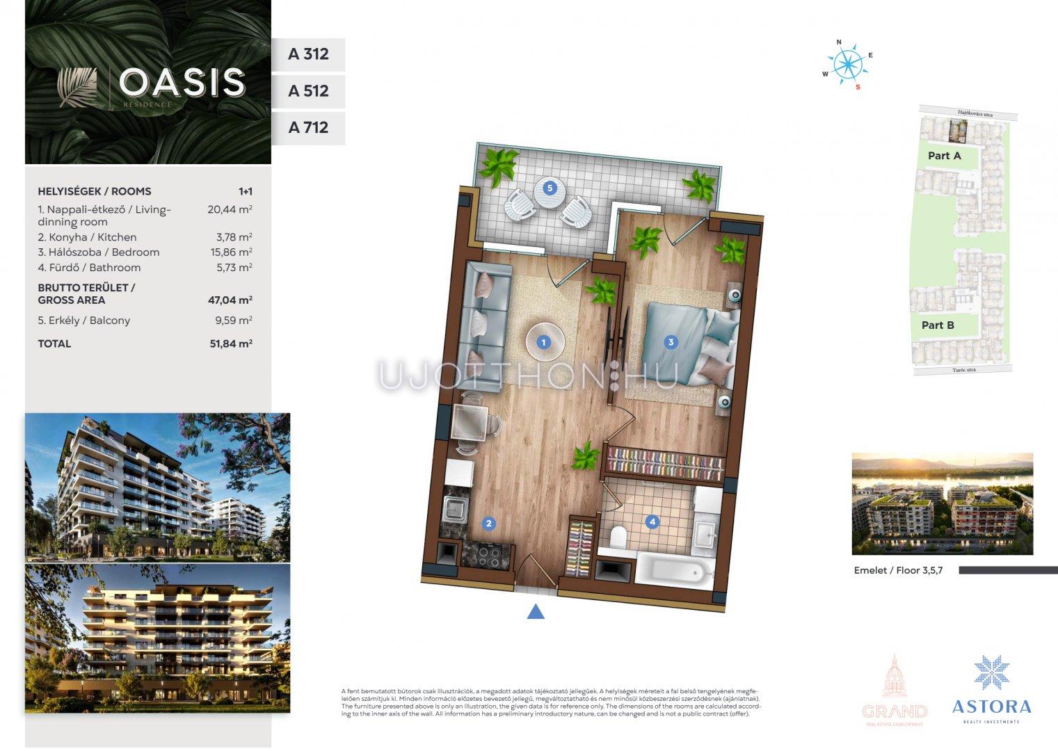 2 szobás 47 m2-es Lakás OASIS Residence - Budapest XIII. kerület, Vizafogó, Sólyatér utca 15