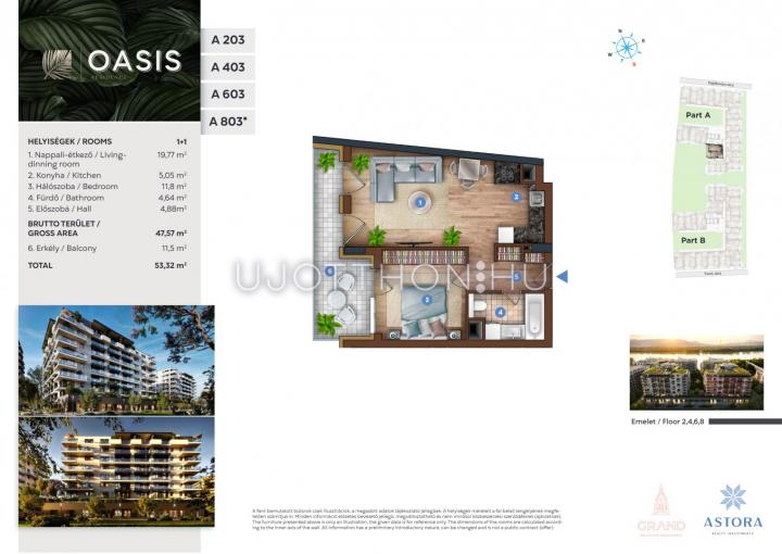 2 szobás 48 m2-es Lakás OASIS Residence - Budapest XIII. kerület, Vizafogó, Sólyatér utca 15