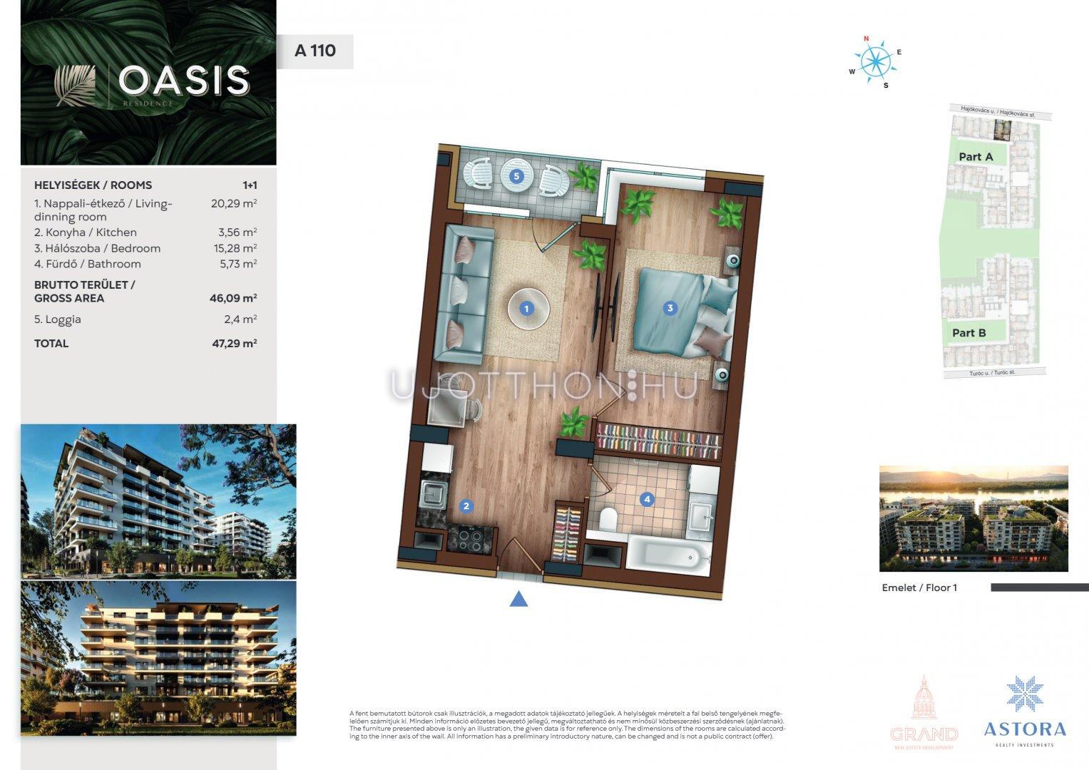2 szobás 46 m2-es Lakás OASIS Residence - Budapest XIII. kerület, Vizafogó, Sólyatér utca 15