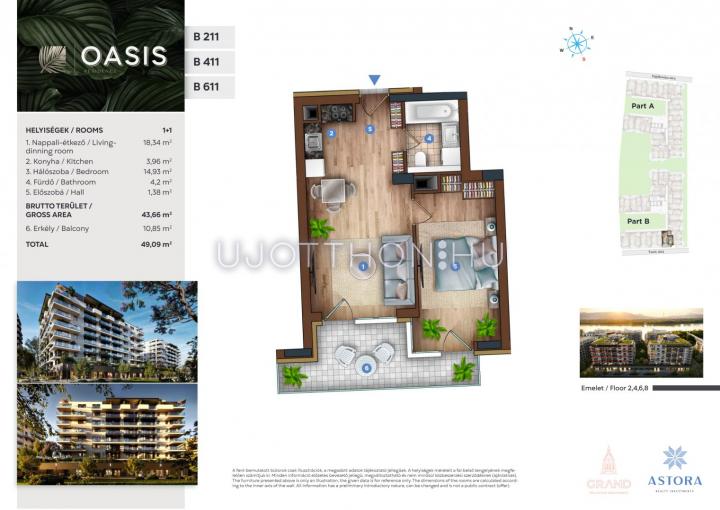 2 szobás 44 m2-es Lakás OASIS Residence - Budapest XIII. kerület, Vizafogó, Sólyatér utca 15