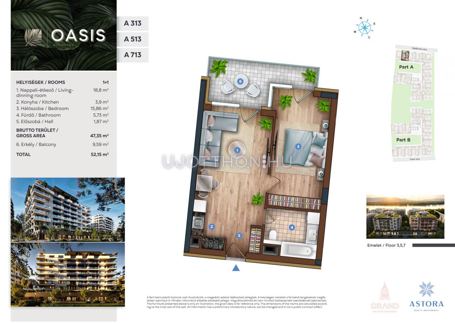 2 szobás 47 m2-es Lakás OASIS Residence - Budapest XIII. kerület, Vizafogó, Sólyatér utca 15