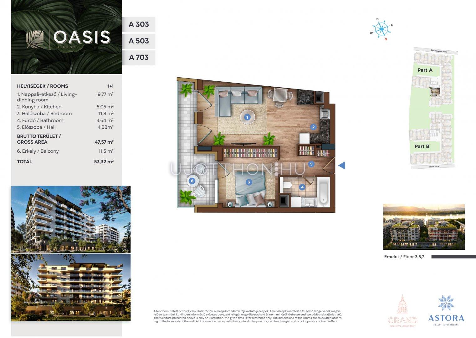 2 szobás 48 m2-es Lakás OASIS Residence - Budapest XIII. kerület, Vizafogó, Sólyatér utca 15