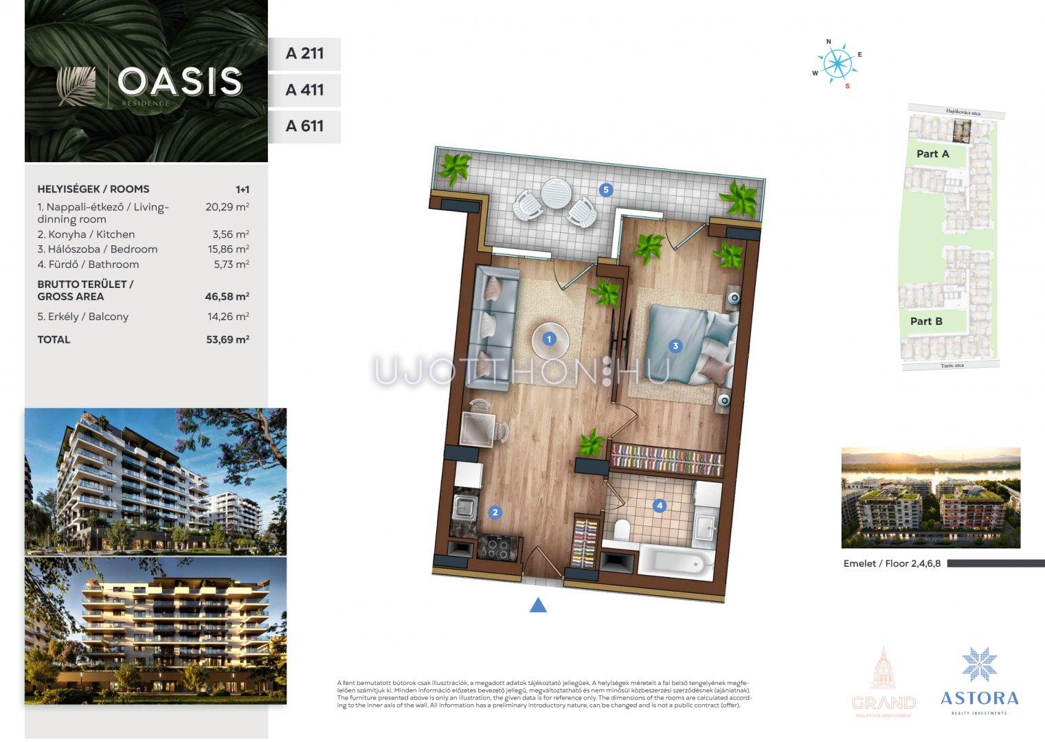 2 szobás 47 m2-es Lakás OASIS Residence - Budapest XIII. kerület, Vizafogó, Sólyatér utca 15