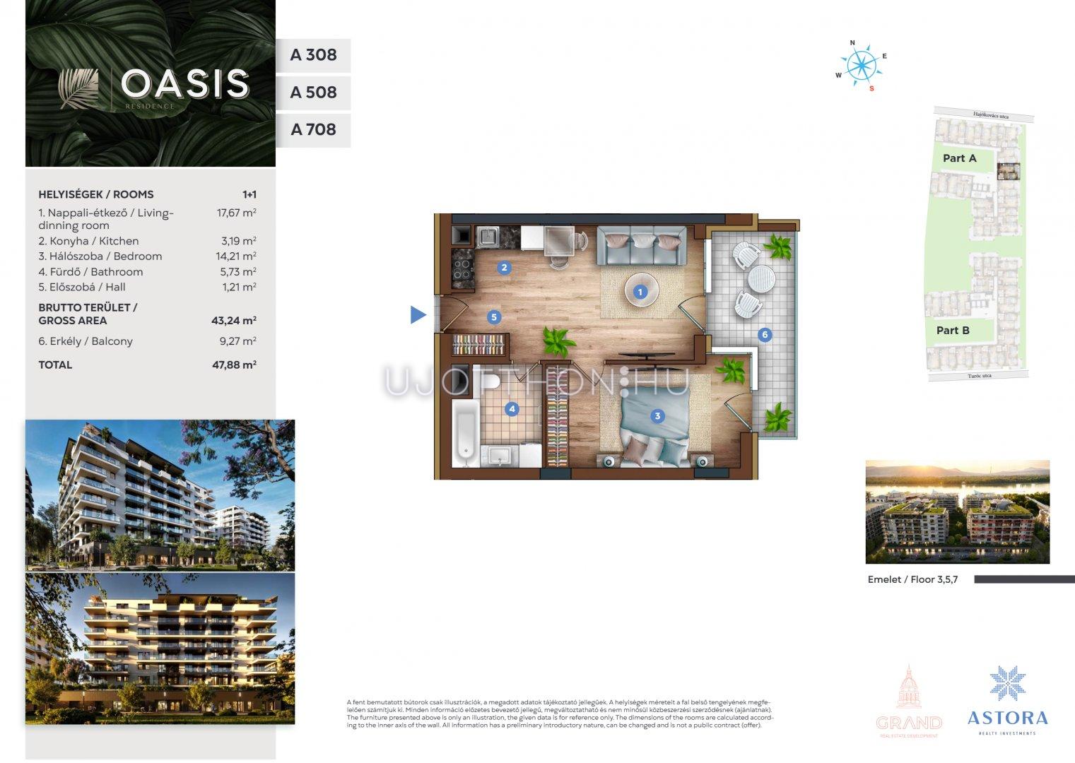 2 szobás 43 m2-es Lakás OASIS Residence - Budapest XIII. kerület, Vizafogó, Sólyatér utca 15
