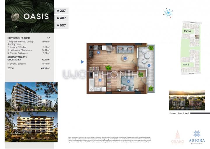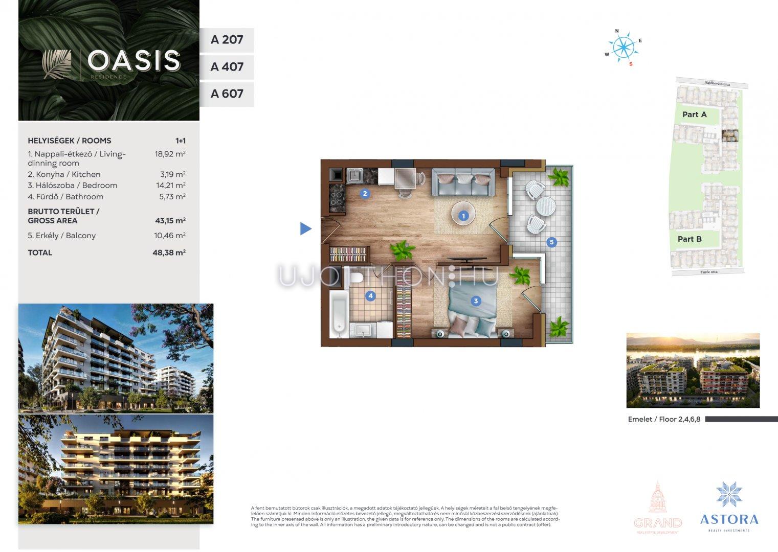 2 szobás 43 m2-es Lakás OASIS Residence - Budapest XIII. kerület, Vizafogó, Sólyatér utca 15