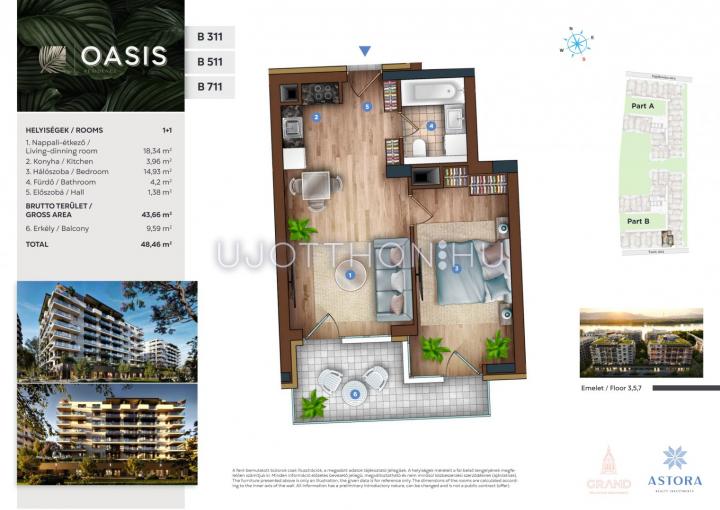 2 szobás 44 m2-es Lakás OASIS Residence - Budapest XIII. kerület, Vizafogó, Sólyatér utca 15