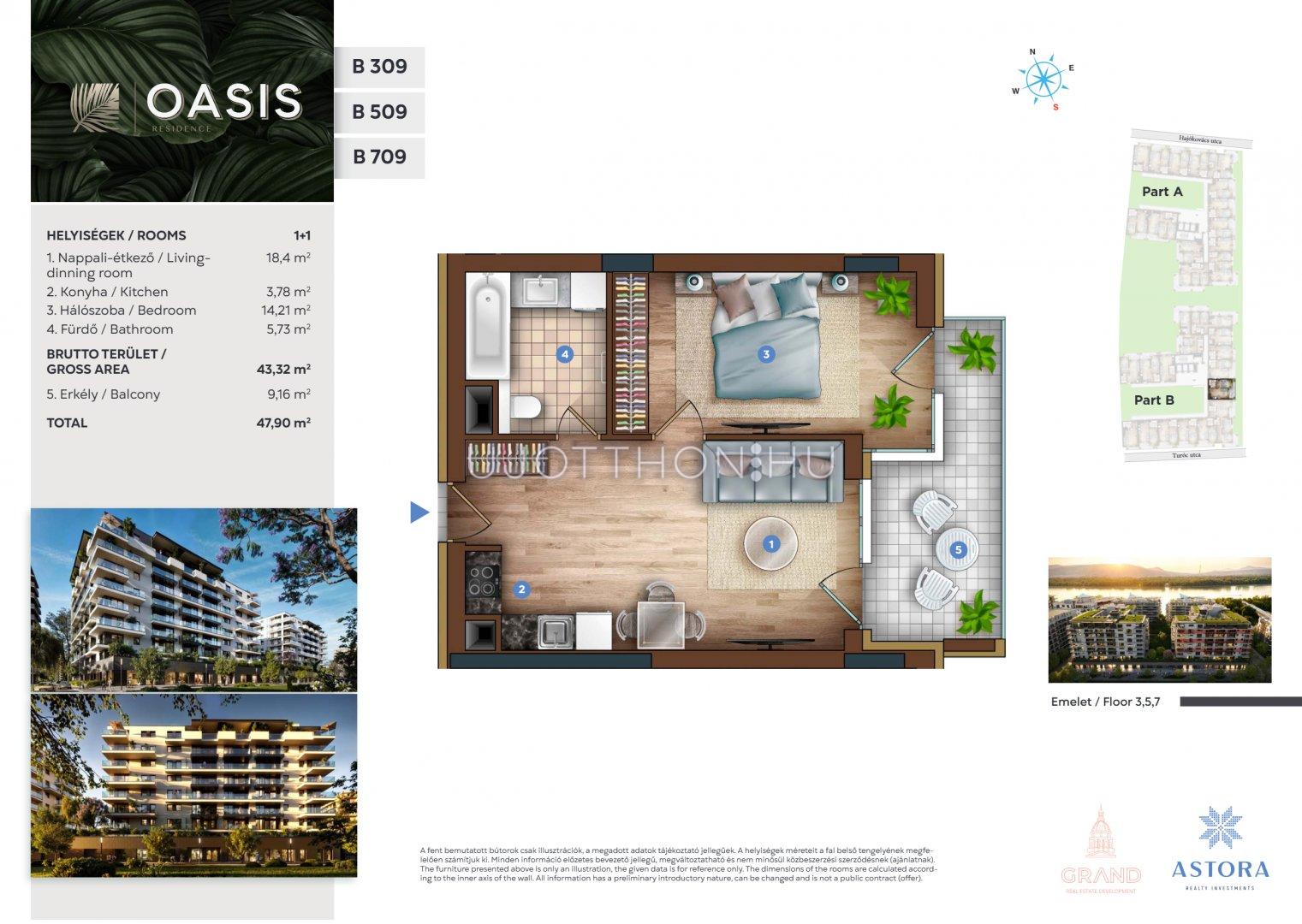2 szobás 43 m2-es Lakás OASIS Residence - Budapest XIII. kerület, Vizafogó, Sólyatér utca 15