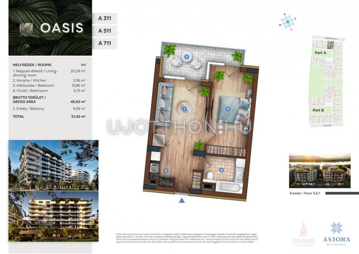 2 szobás 47 m2-es Lakás OASIS Residence - Budapest XIII. kerület, Vizafogó, Sólyatér utca 15