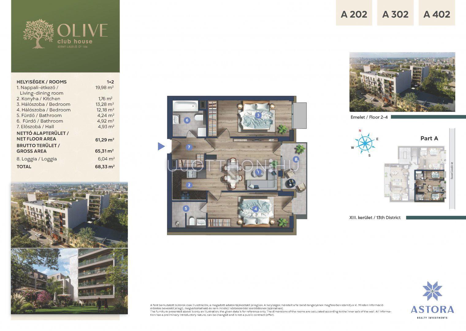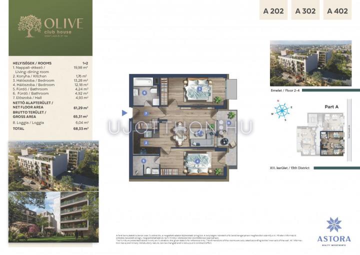 3 szobás 63 m2-es Lakás OLIVE Club House by Astora - Budapest XIII. kerület, Angyalföld, Szent László út 106