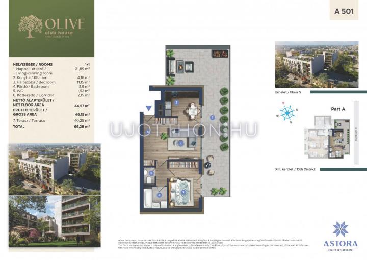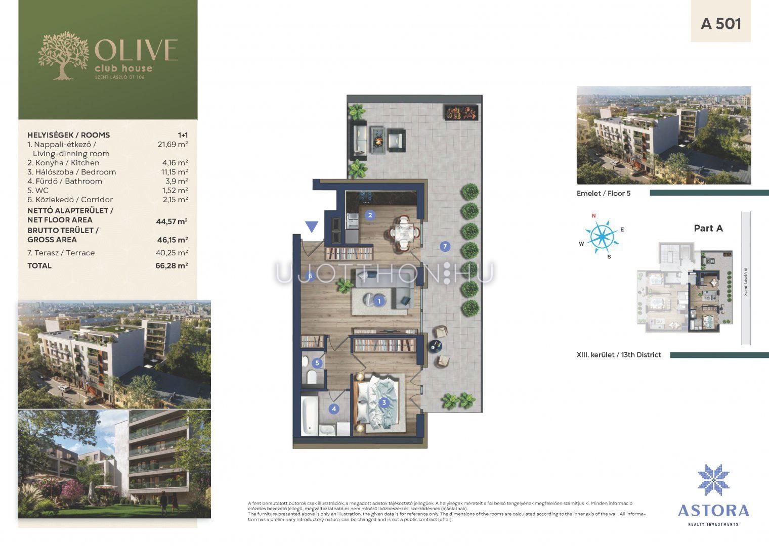 2 szobás 46 m2-es Lakás OLIVE Club House by Astora - Budapest XIII. kerület, Angyalföld, Szent László út 106