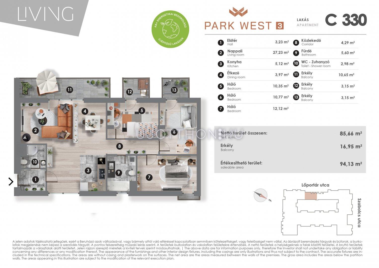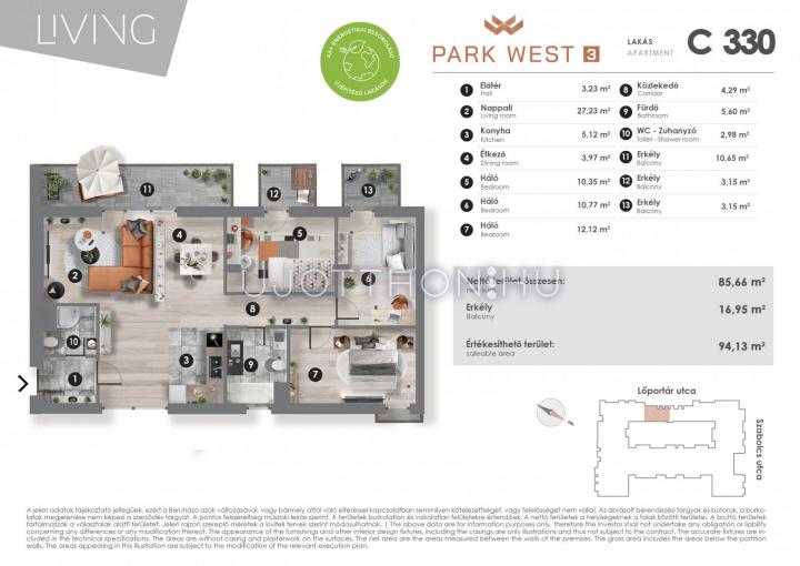 4 szobás 85 m2-es Lakás Park West 3 - Budapest XIII. kerület, Angyalföld, Szabolcs utca 17