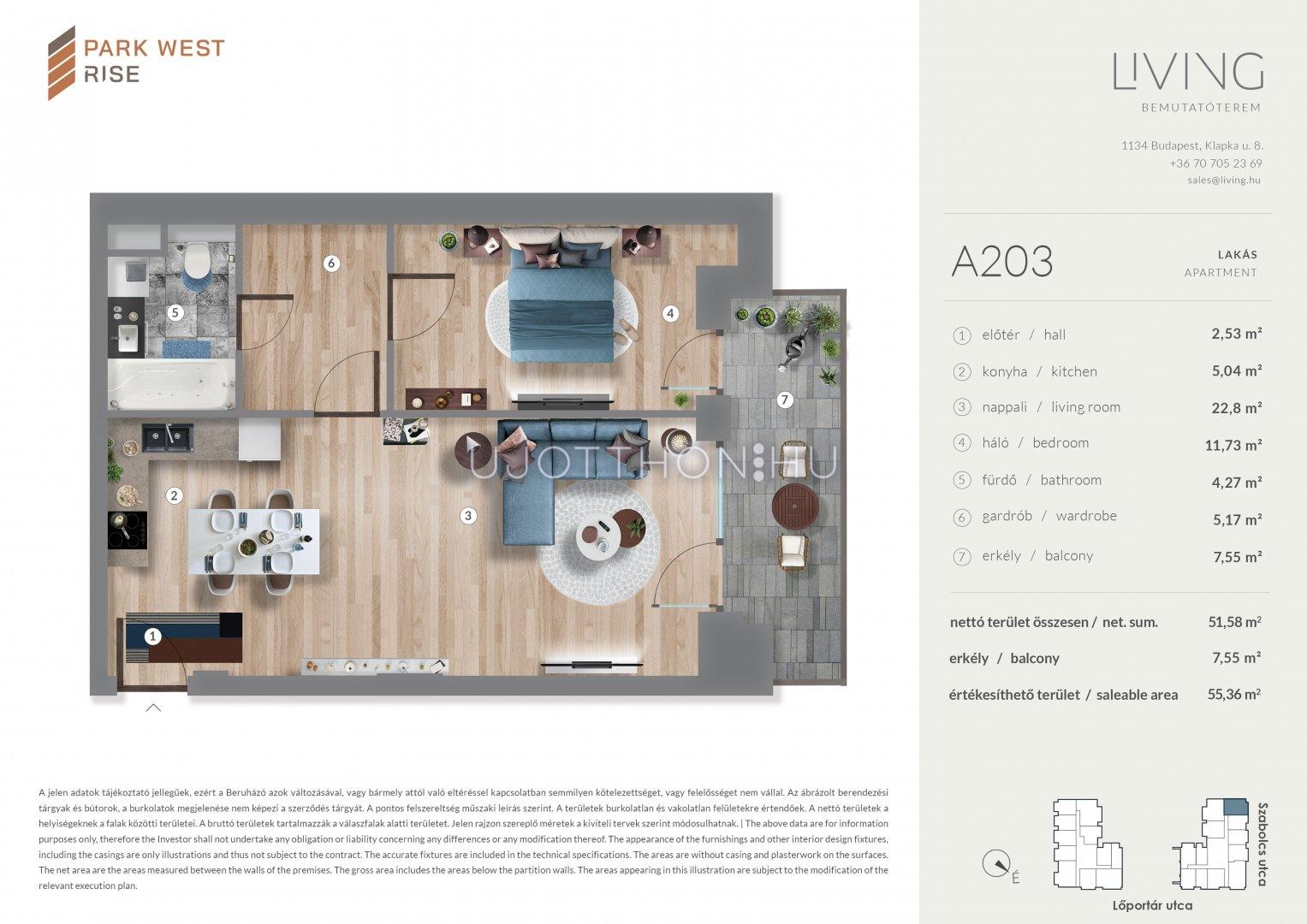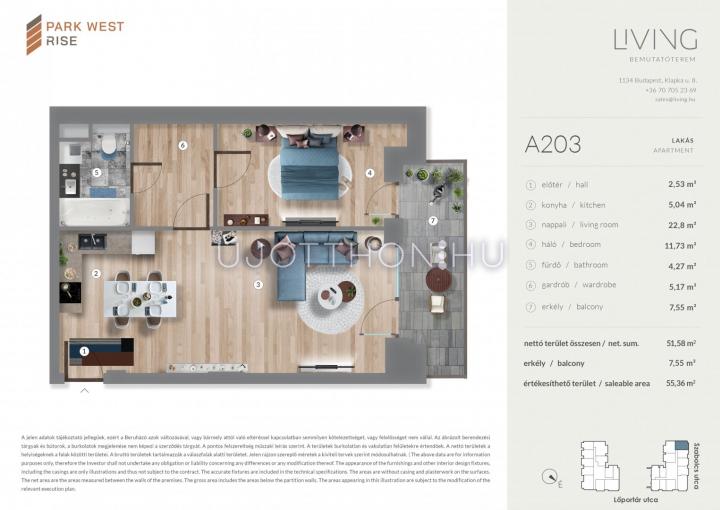 2 szobás 51 m2-es Lakás Park West Rise - Budapest XIII. kerület, Angyalföld, Szabolcs utca 15