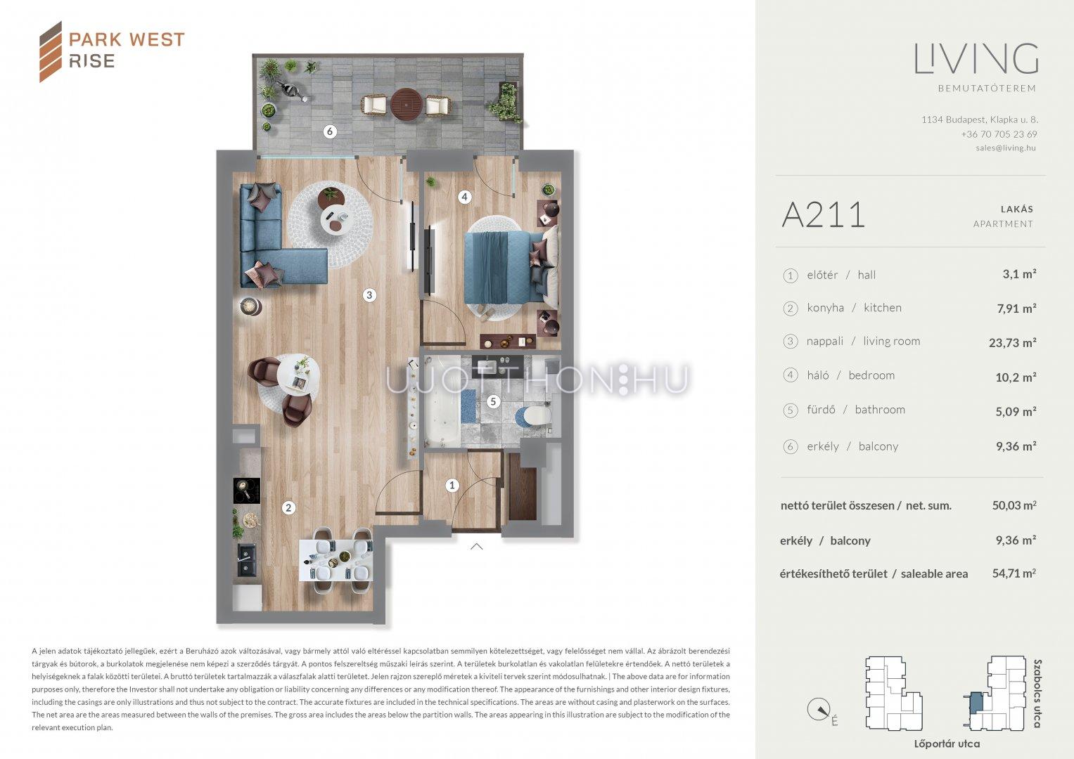 2 szobás 50 m2-es Lakás Park West Rise - Budapest XIII. kerület, Angyalföld, Szabolcs utca 15