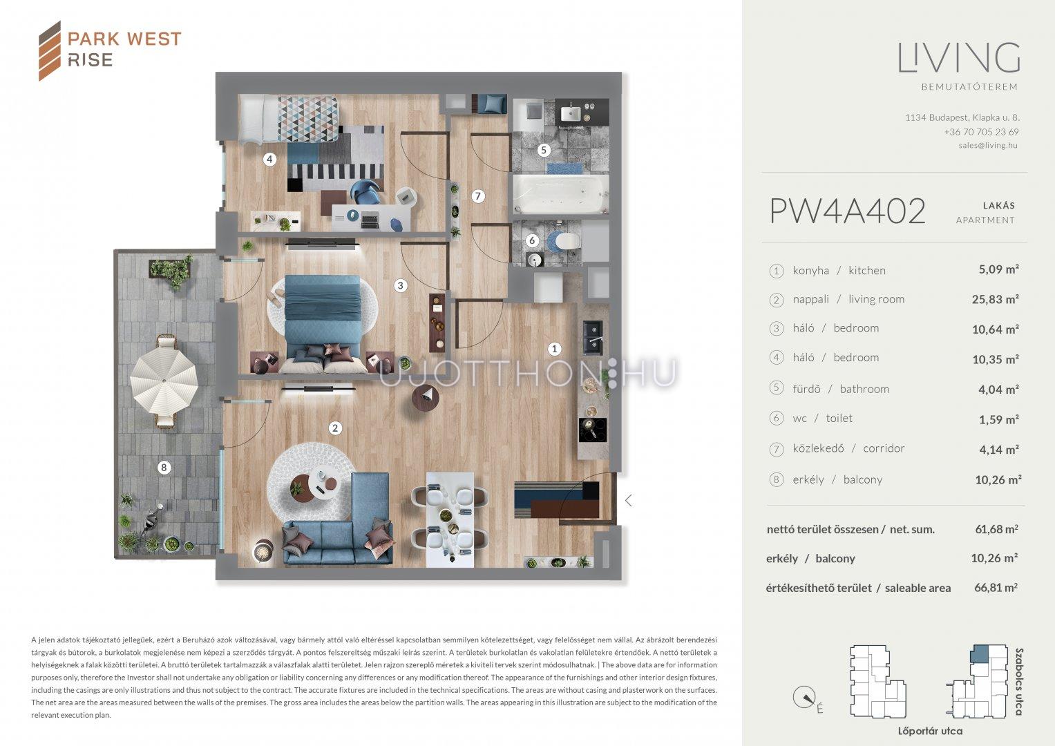 3 szobás 61 m2-es Lakás Park West Rise - Budapest XIII. kerület, Angyalföld, Szabolcs utca 15
