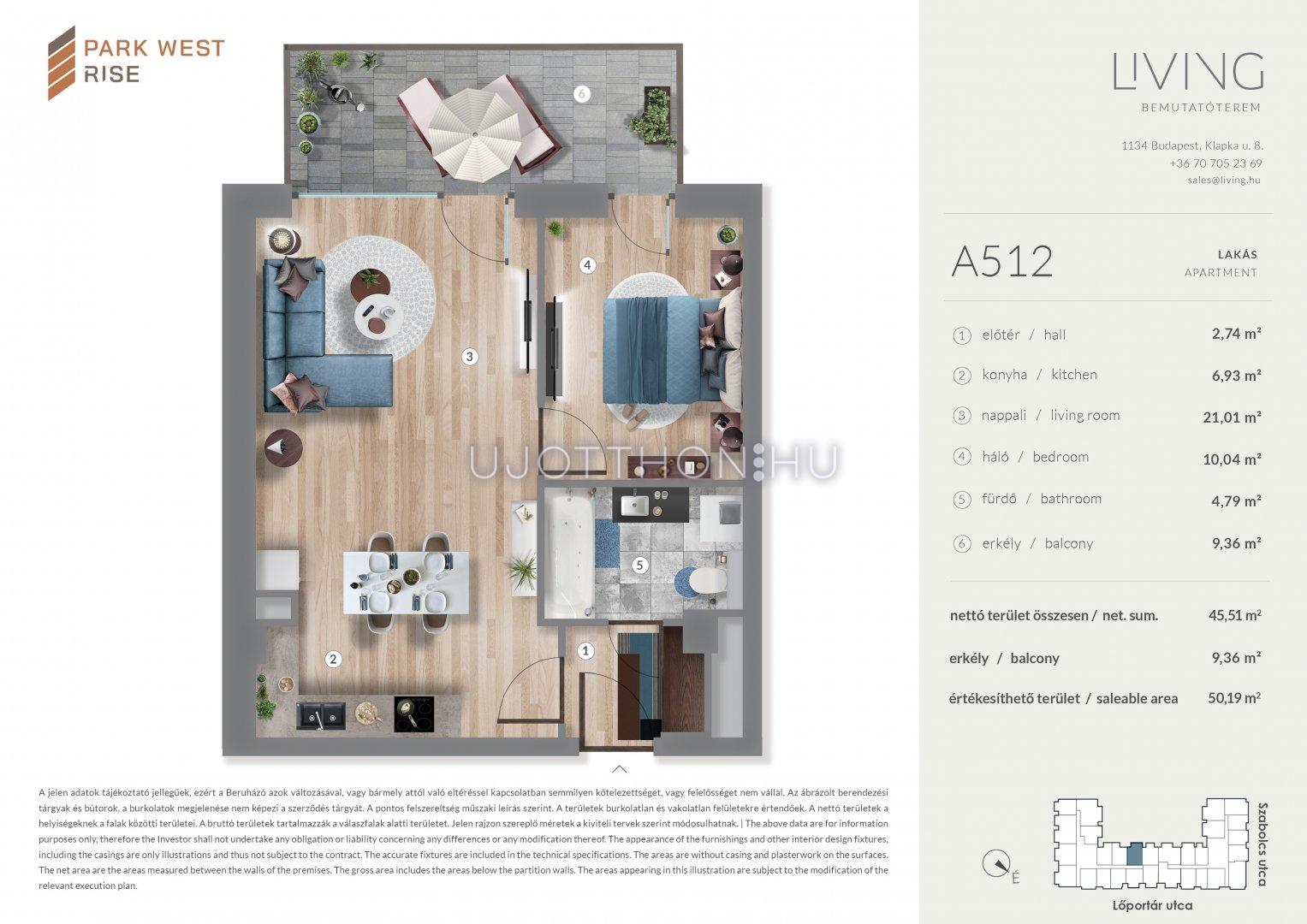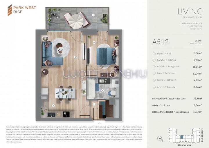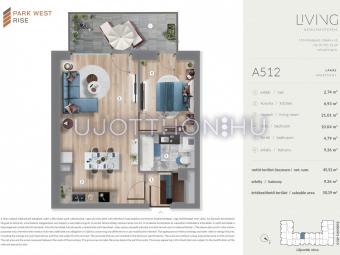 2 szobás 45 m2-es Lakás Park West Rise - Budapest XIII. kerület, Angyalföld, Szabolcs utca 15