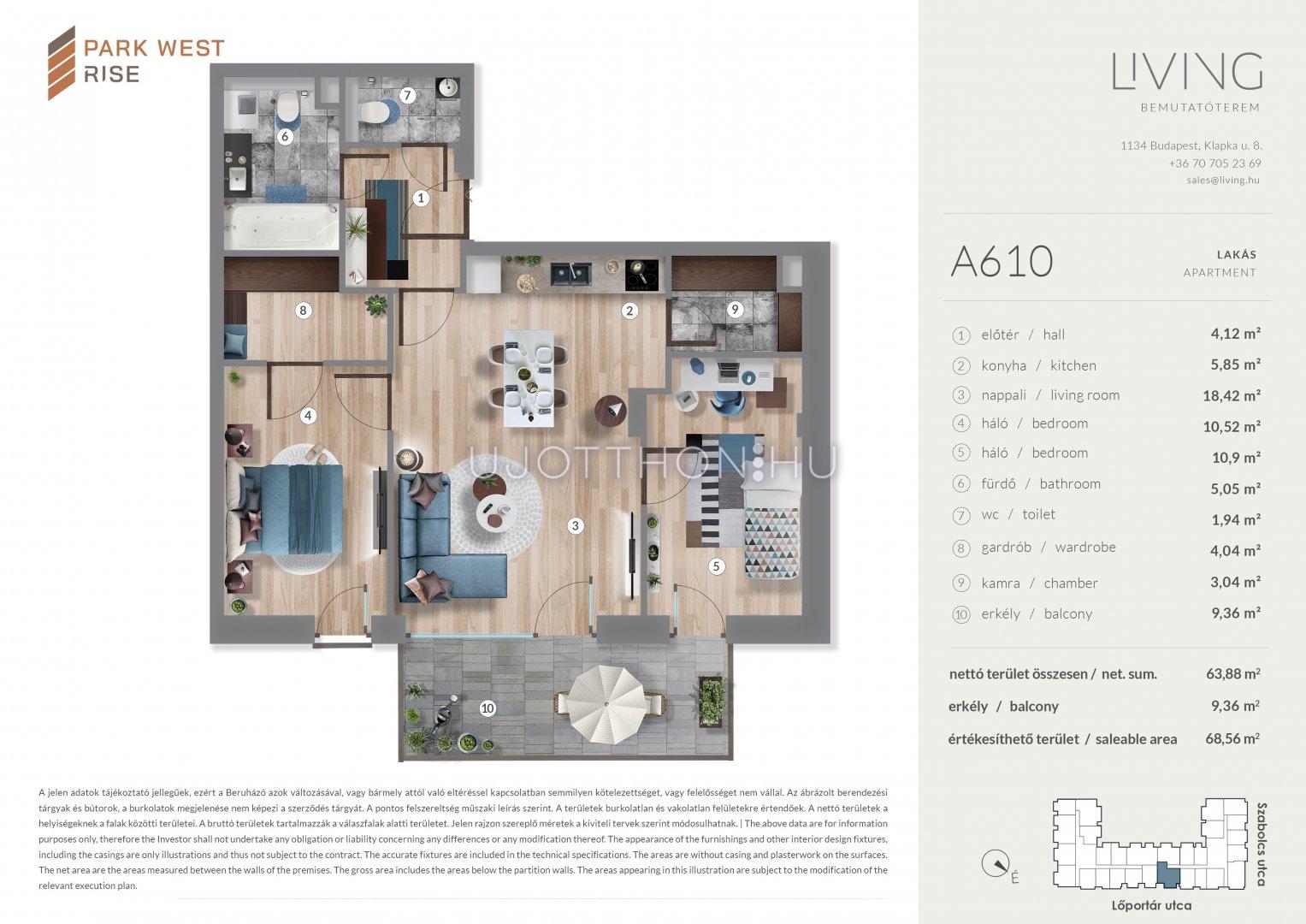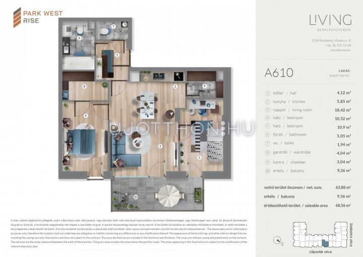 3 szobás 64 m2-es Lakás Park West Rise - Budapest XIII. kerület, Angyalföld, Szabolcs utca 15