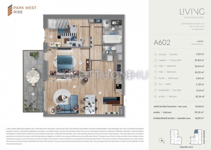 3 szobás 61 m2-es Lakás Park West Rise - Budapest XIII. kerület, Angyalföld, Szabolcs utca 15