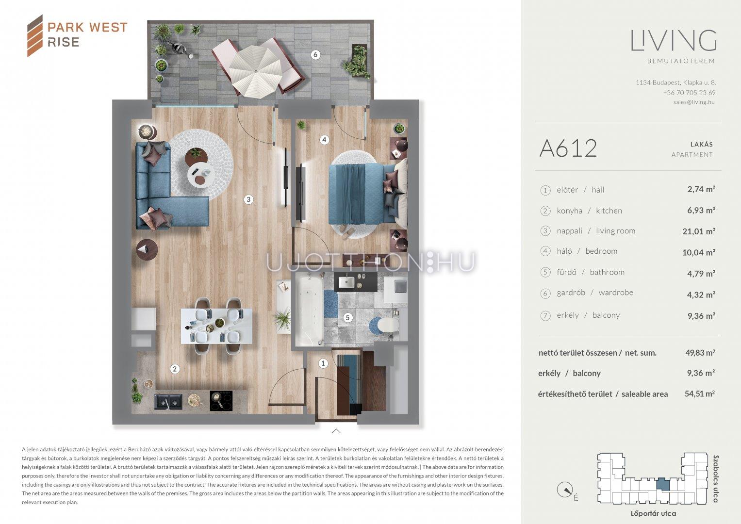 2 szobás 45 m2-es Lakás Park West Rise - Budapest XIII. kerület, Angyalföld, Szabolcs utca 15