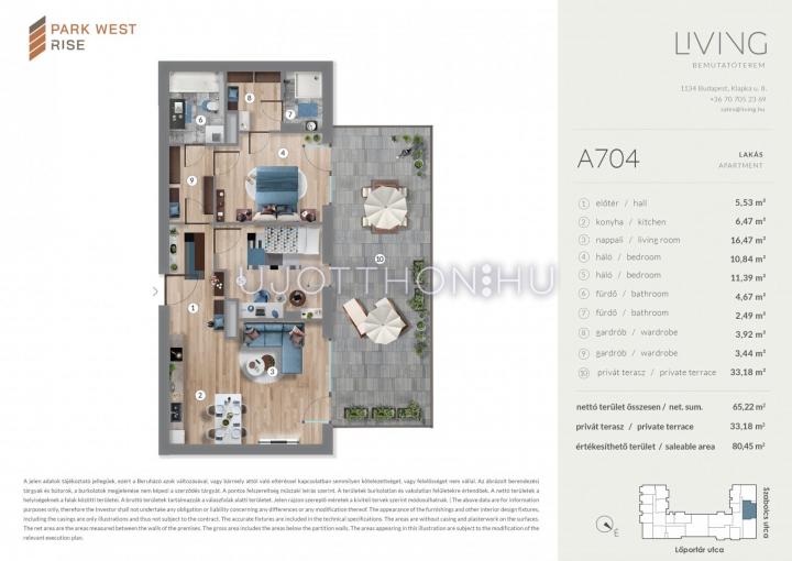 3 szobás 65 m2-es Lakás Park West Rise - Budapest XIII. kerület, Angyalföld, Szabolcs utca 15