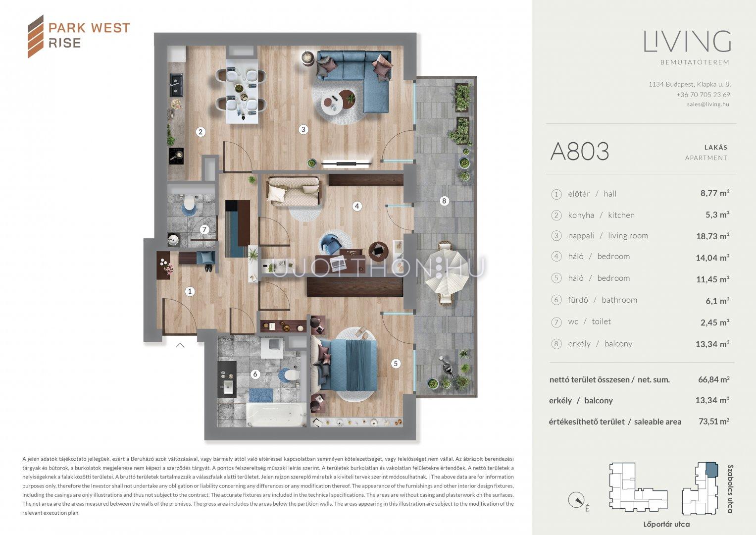 3 szobás 67 m2-es Lakás Park West Rise - Budapest XIII. kerület, Angyalföld, Szabolcs utca 15