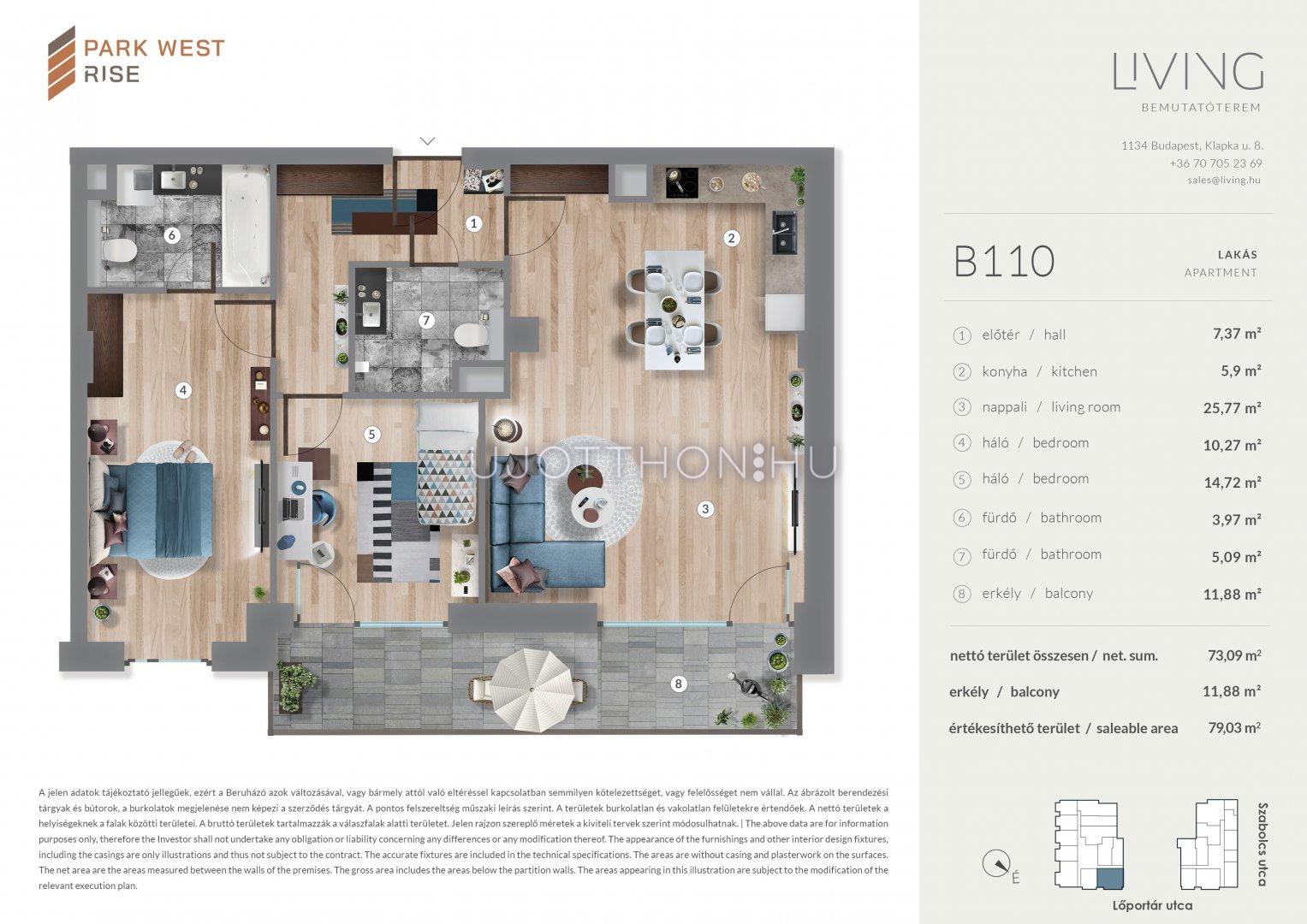 3 szobás 73 m2-es Lakás Park West Rise - Budapest XIII. kerület, Angyalföld, Szabolcs utca 15