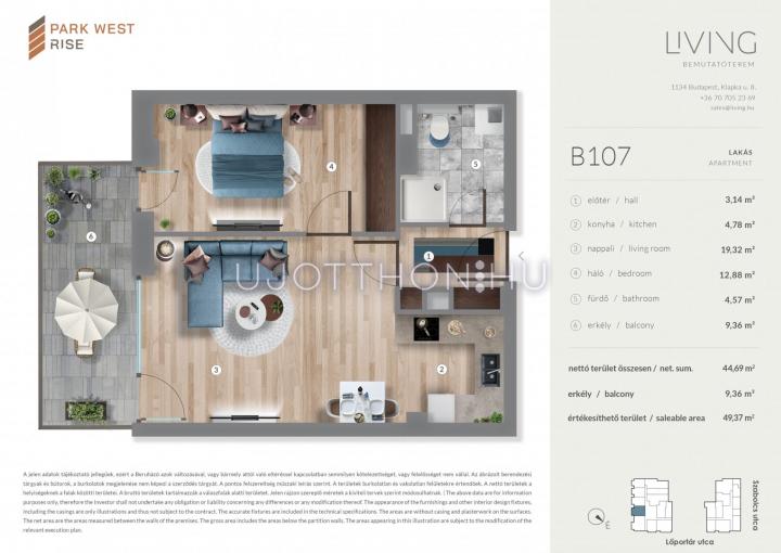 2 szobás 44 m2-es Lakás Park West Rise - Budapest XIII. kerület, Angyalföld, Szabolcs utca 15