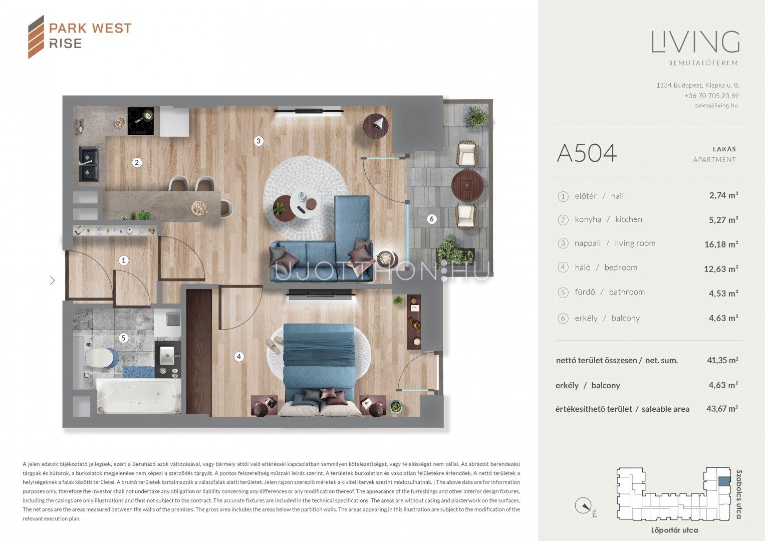 4 szobás 83 m2-es Lakás Park West Rise - Budapest XIII. kerület, Angyalföld, Szabolcs utca 15