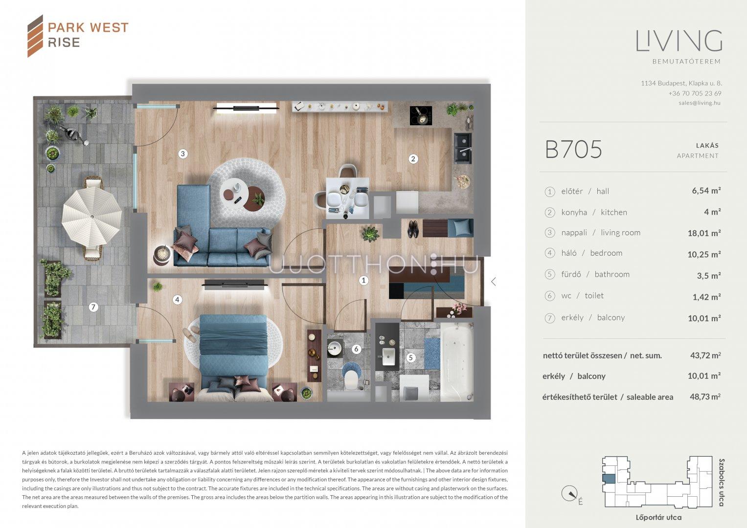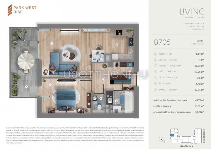 2 szobás 44 m2-es Lakás Park West Rise - Budapest XIII. kerület, Angyalföld, Szabolcs utca 15