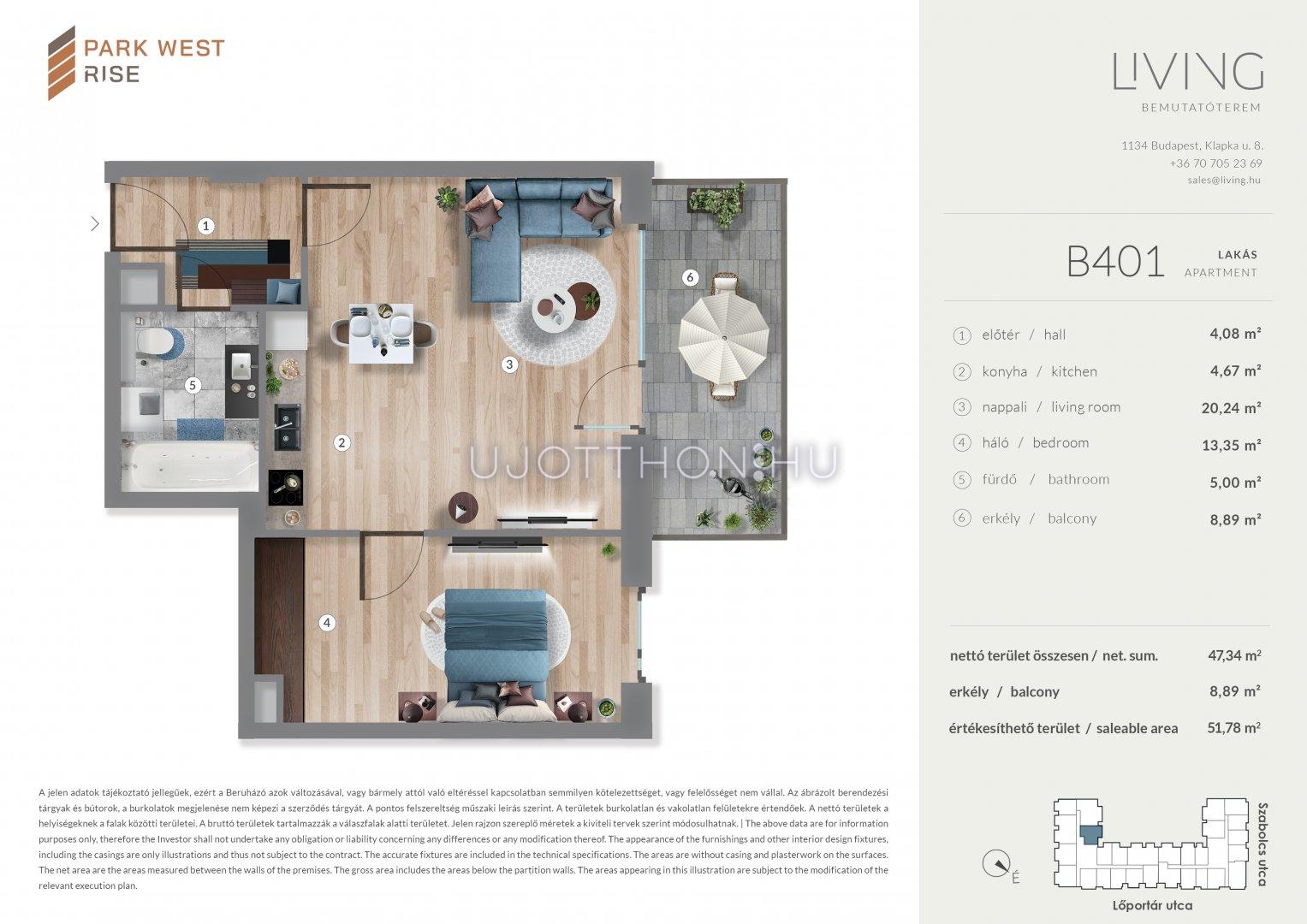 2 szobás 47 m2-es Lakás Park West Rise - Budapest XIII. kerület, Angyalföld, Szabolcs utca 15