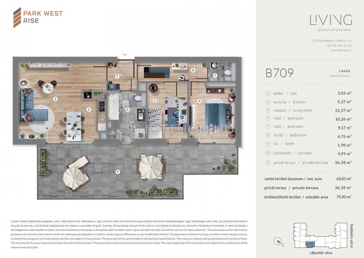 3 szobás 63 m2-es Lakás Park West Rise - Budapest XIII. kerület, Angyalföld, Szabolcs utca 15