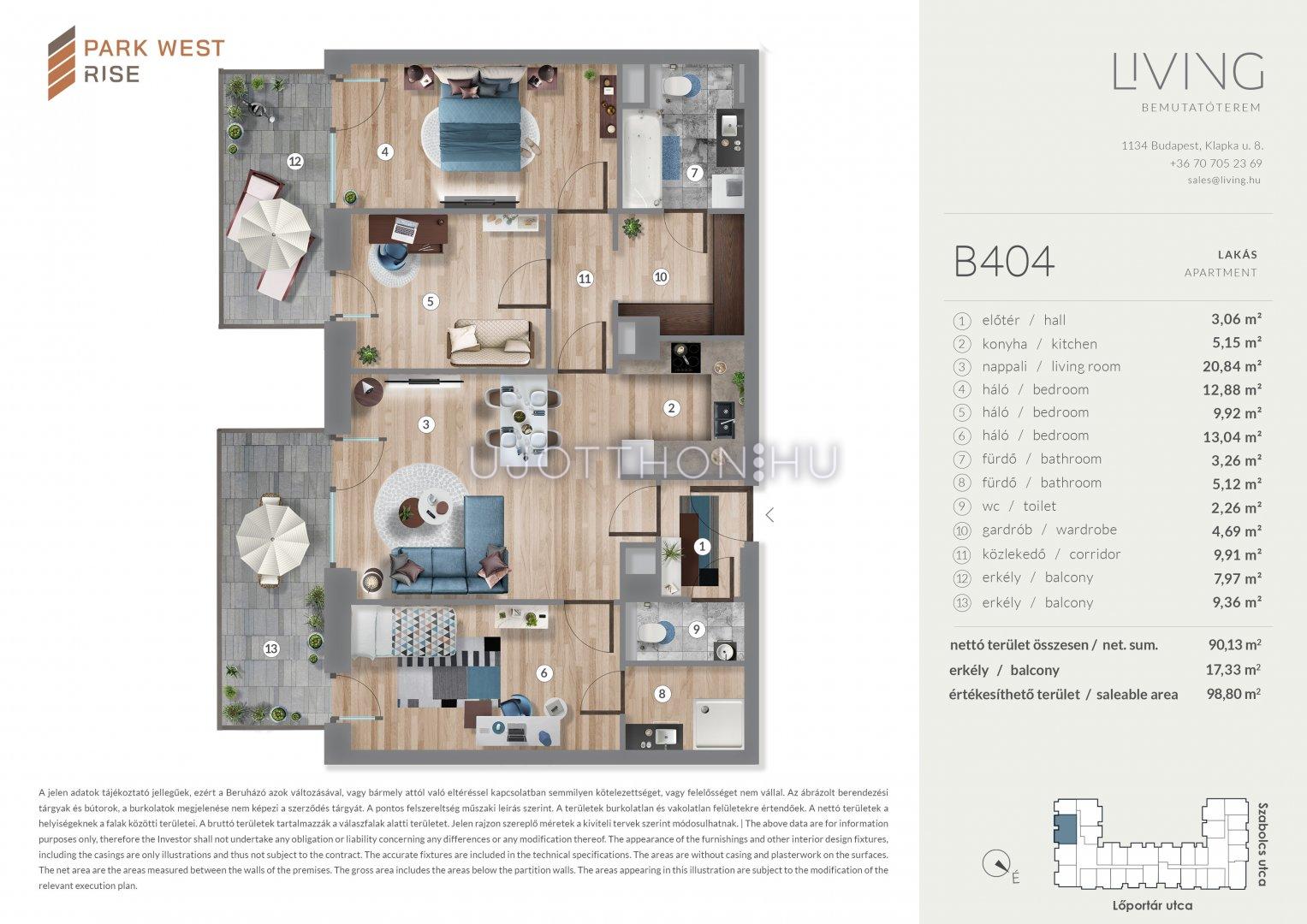 4 szobás 83 m2-es Lakás Park West Rise - Budapest XIII. kerület, Angyalföld, Szabolcs utca 15