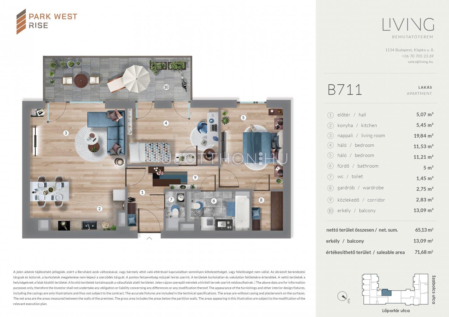 3 szobás 65 m2-es Lakás Park West Rise - Budapest XIII. kerület, Angyalföld, Szabolcs utca 15
