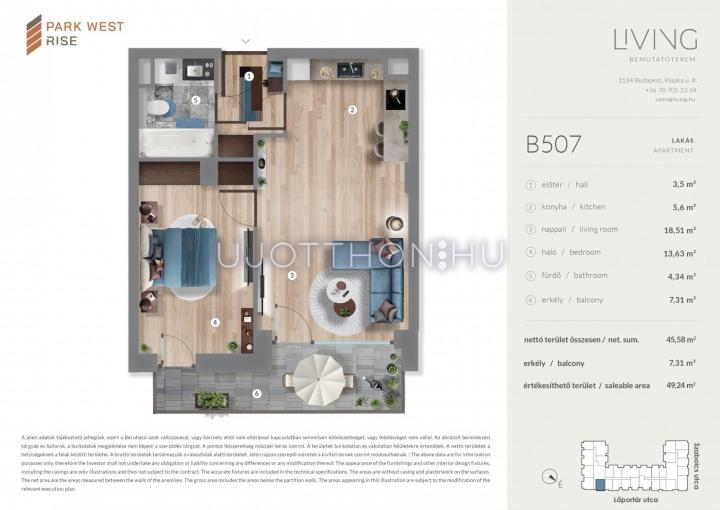 2 szobás 45 m2-es Lakás Park West Rise - Budapest XIII. kerület, Angyalföld, Szabolcs utca 15