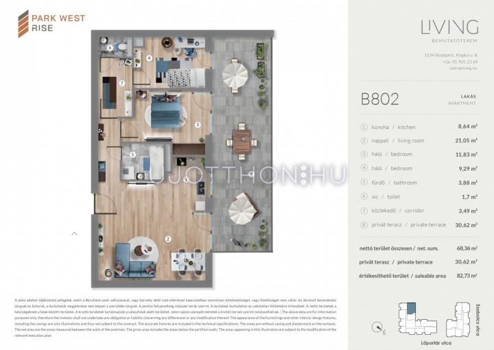 3 szobás 65 m2-es Lakás Park West Rise - Budapest XIII. kerület, Angyalföld, Szabolcs utca 15