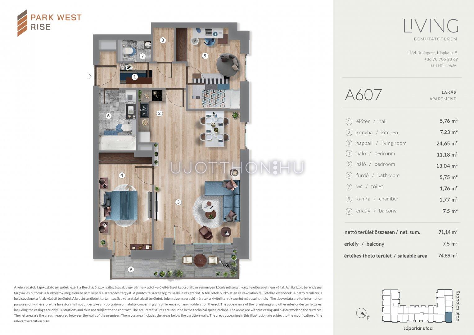 2 szobás 45 m2-es Lakás Park West Rise - Budapest XIII. kerület, Angyalföld, Szabolcs utca 15
