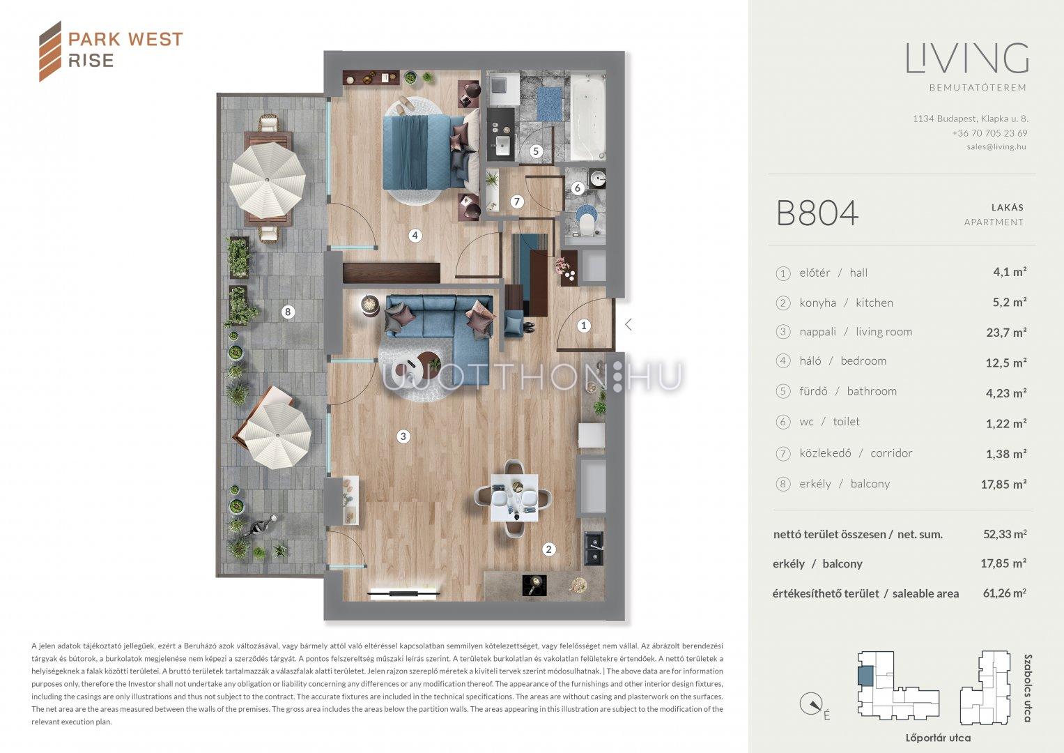2 szobás 51 m2-es Lakás Park West Rise - Budapest XIII. kerület, Angyalföld, Szabolcs utca 15