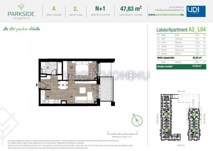 2 szobás 43 m2-es Lakás Parkside Residence - Budapest XIII. kerület, Vizafogó, Visegrádi utca 116