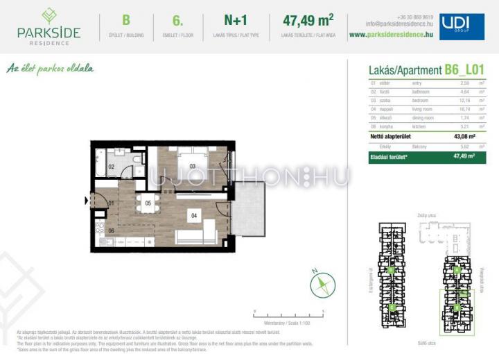 2 szobás 43 m2-es Lakás Parkside Residence - Budapest XIII. kerület, Vizafogó, Visegrádi utca 116