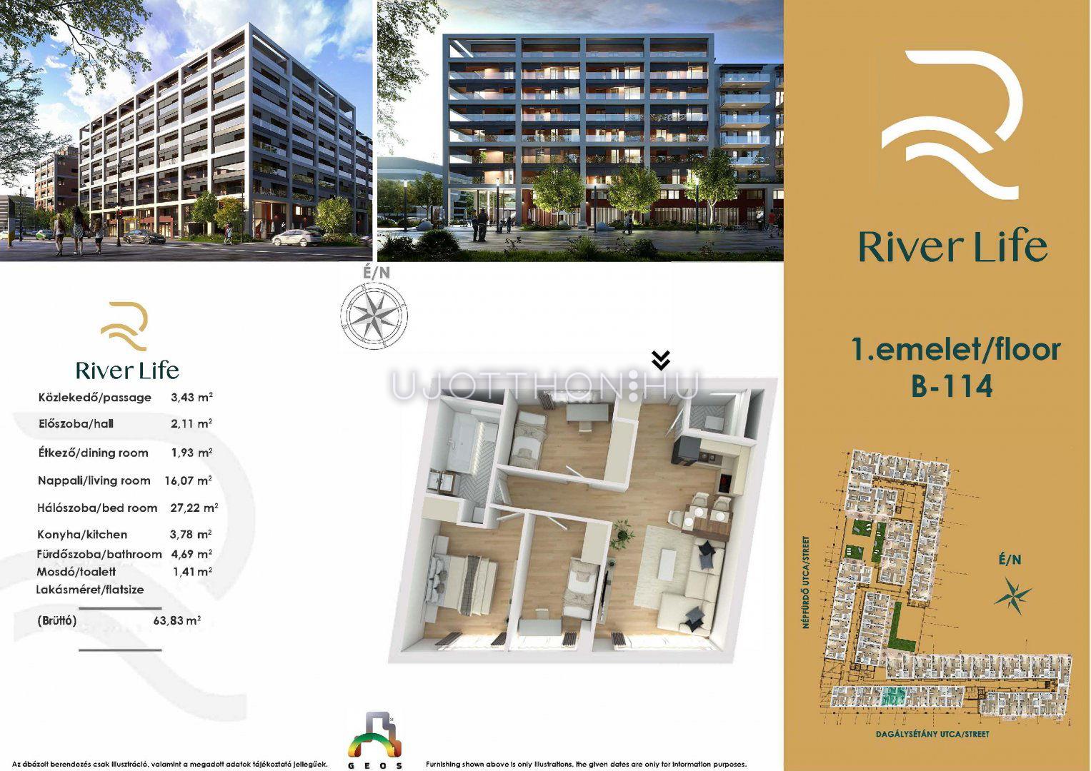 3 + 1 félszobás 64 m2-es Lakás River Life - Budapest XIII. kerület, Vizafogó, Népfürdő utca 47