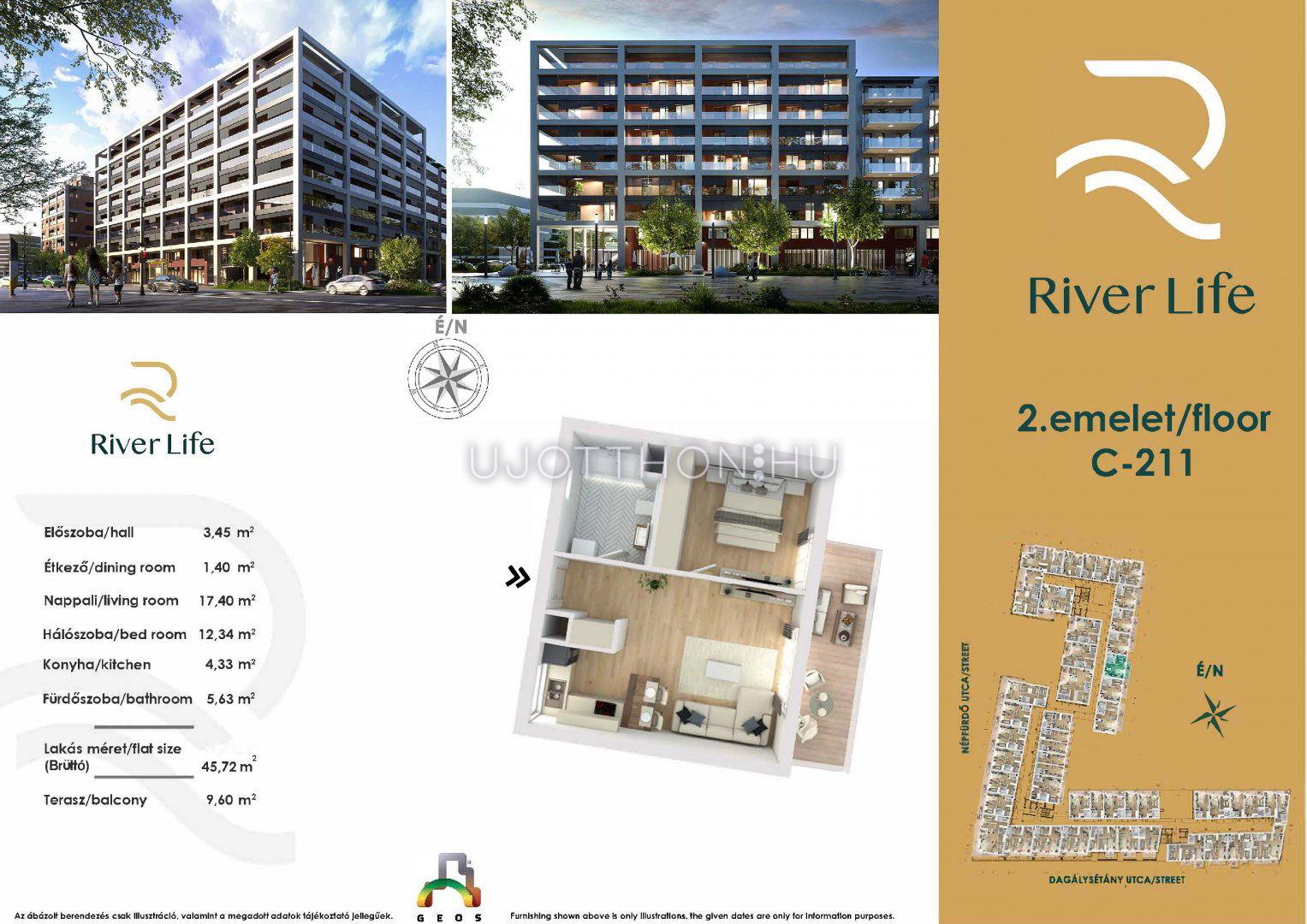 1 + 1 félszobás 46 m2-es Lakás River Life - Budapest XIII. kerület, Vizafogó, Népfürdő utca 47