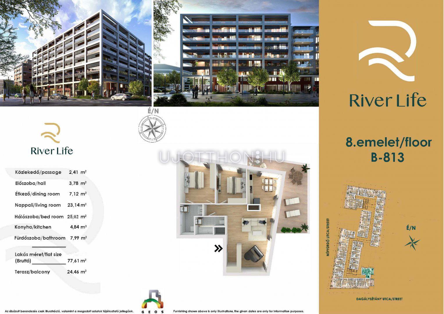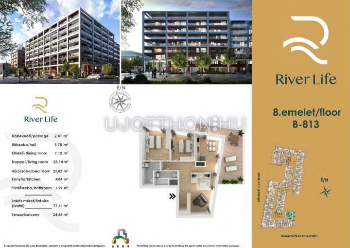 A River Life új építésű lakópark 13. kerület Népfürdő utca 47-es szám alatt helyezkedik el, amely egy modern és elegáns otthonokkal teli komplexum lesz. A 8 emeletes épület kiválóan illeszkedik a városképbe, valamint ideális közlekedési infrastruktúrával rendelkezik. Az elhelyezkedése kiváló, hiszen a Váci úti irodafolyosó szomszédságában található, így könnyedén elérhető a város központja a fontosabb üzleti negyedek.