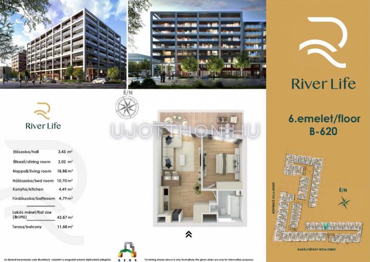 1 + 1 félszobás 44 m2-es Lakás River Life - Budapest XIII. kerület, Vizafogó, Népfürdő utca 47